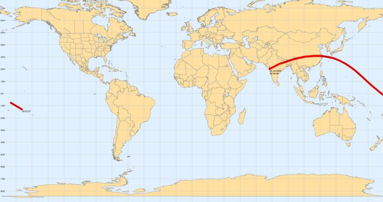 The eclipse map in Win*Star Pro 4 and the Horizons program shows city names and a similarly minimalistic total eclipse line and no partial eclipse lines, so it cannot be used to determine what cities can view the total eclipse. When zooming in on India, for example, the total eclipse line is very hard to see, since it is depicted as very light dots separated from each other.