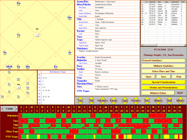 section of the screen, select the date, time, and location to use, save the Muhurta or reload a