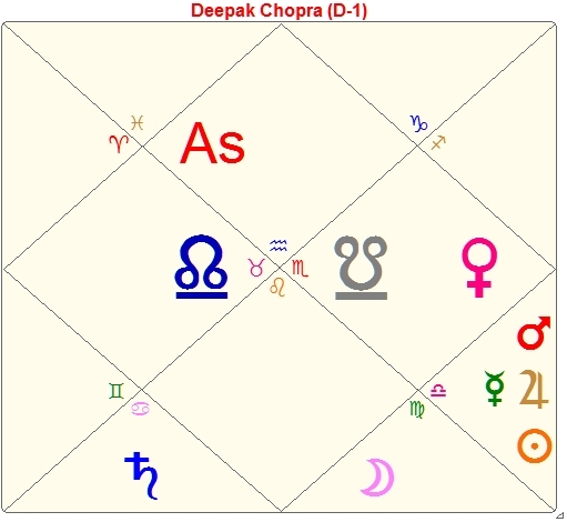 I have often found a strong 6th-house Lagnesha in the charts of health practitioners, and Deepak Chopra is a good example of this. A renowned and respected doctor, he has brought Eastern ideas and concepts of health to his Western audience with great clarity and depth. Interestingly, he has also been involved in litigations concerning libelous accusations against him.