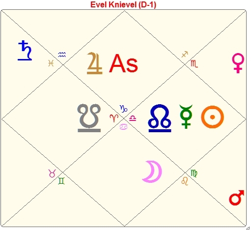 Evel Knievel, October 17, 1938; 2:40 p.m. MST; Butte, MT, USA (46°N00', 112°W32'); AA: birth certificate.